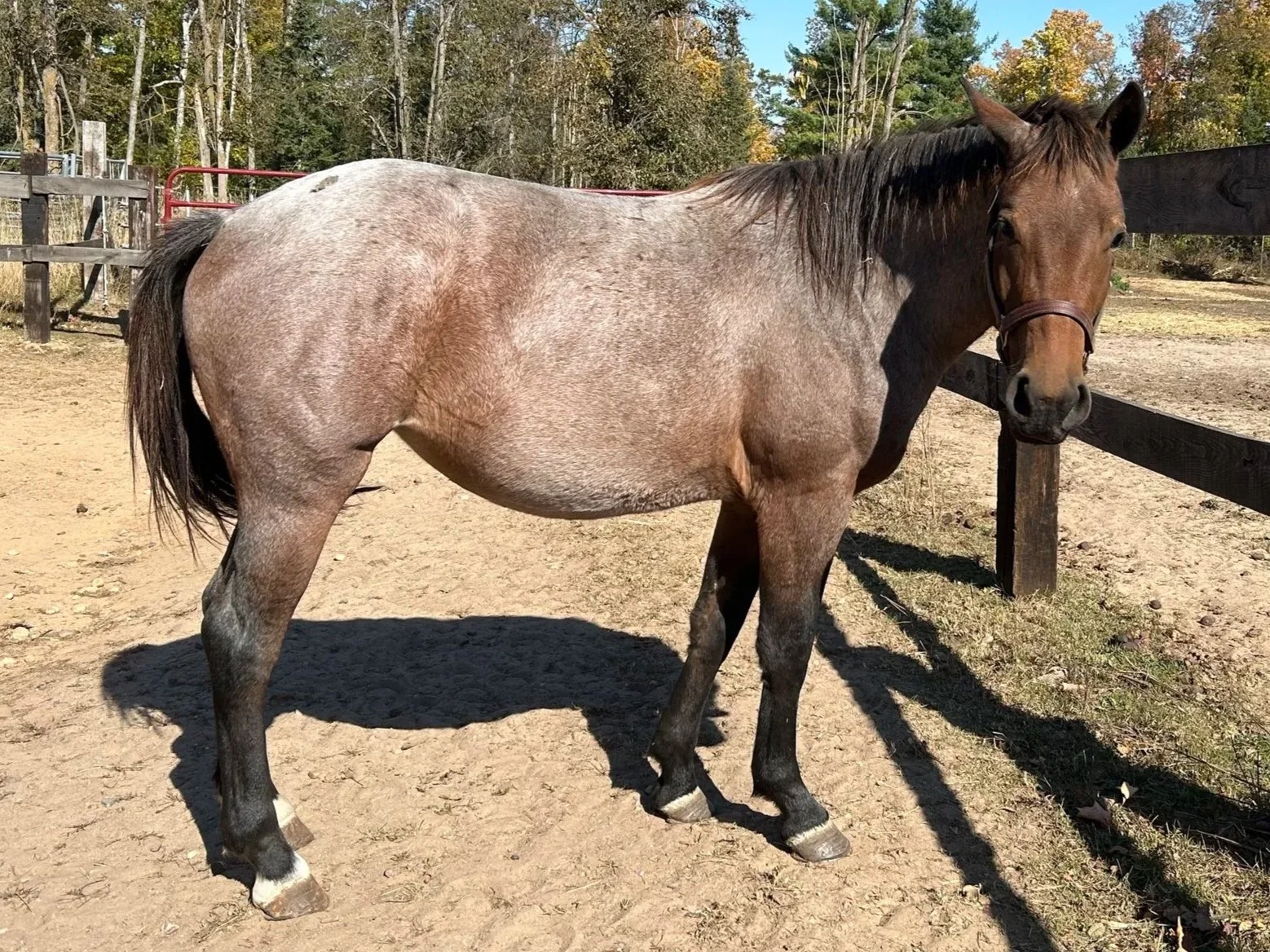 Philly is a beautiful bay roan Draft cross mare. She is the largest horse at Silver Birch Ranch, and a gentle giant. Philly was named because when we got her, we were told she was a stallion (a male horse). However; when she arrived, she was actually a Filly (a young female horse)! She was named Philly (with a slightly different spelling) in remembrance of this humorous mix-up. Philly can also mean “Horse-Lover” which seems oddly fitting.
